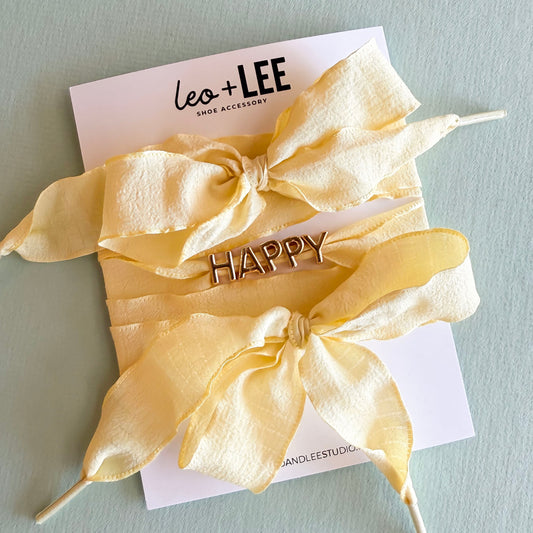 Leo and Lee Sneaker Lace Charm Sets- Butter Yellow + Happy Letter Charms