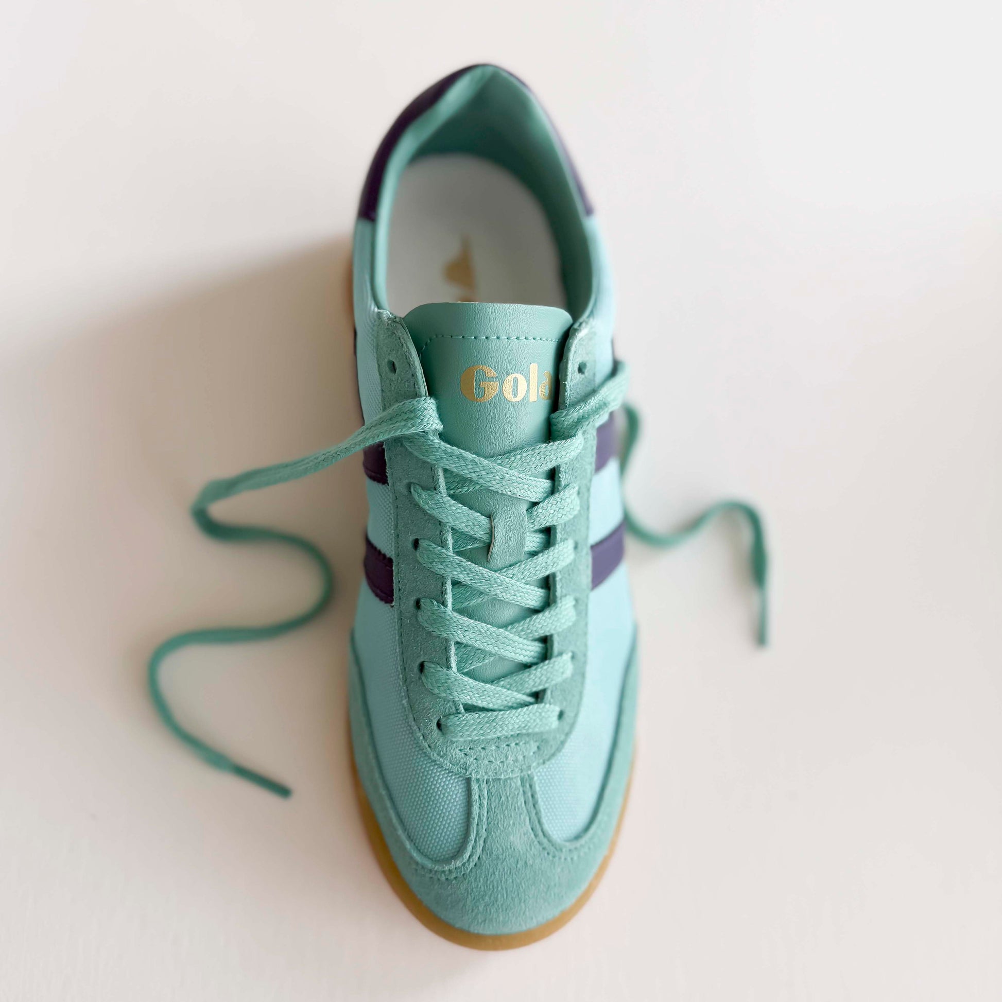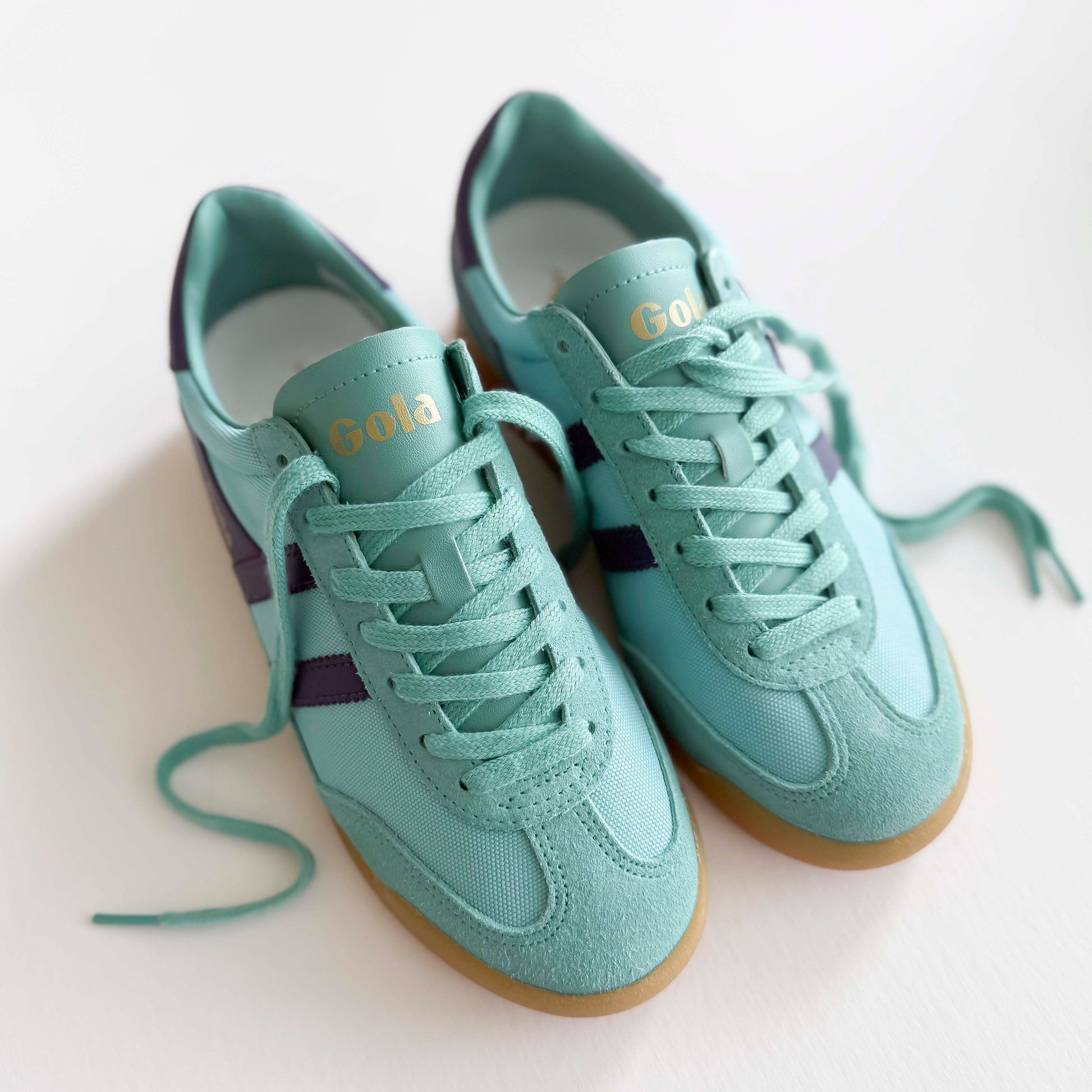 Retro and sporty, this soccer-inspired pair from Gola features heavy-weave nylon uppers and suede and leather overlays, complete with a gum wedge sole for some cool contrast.