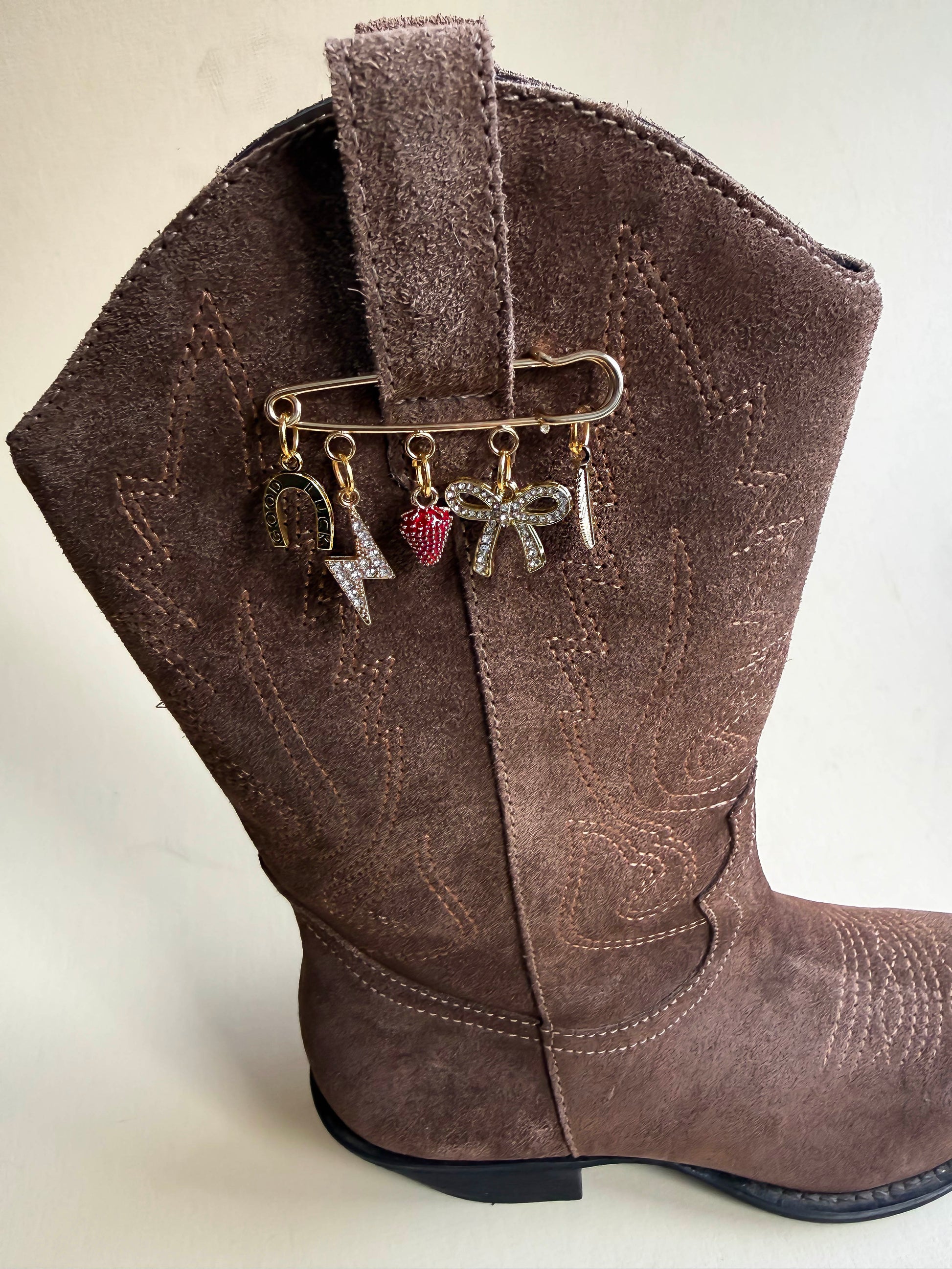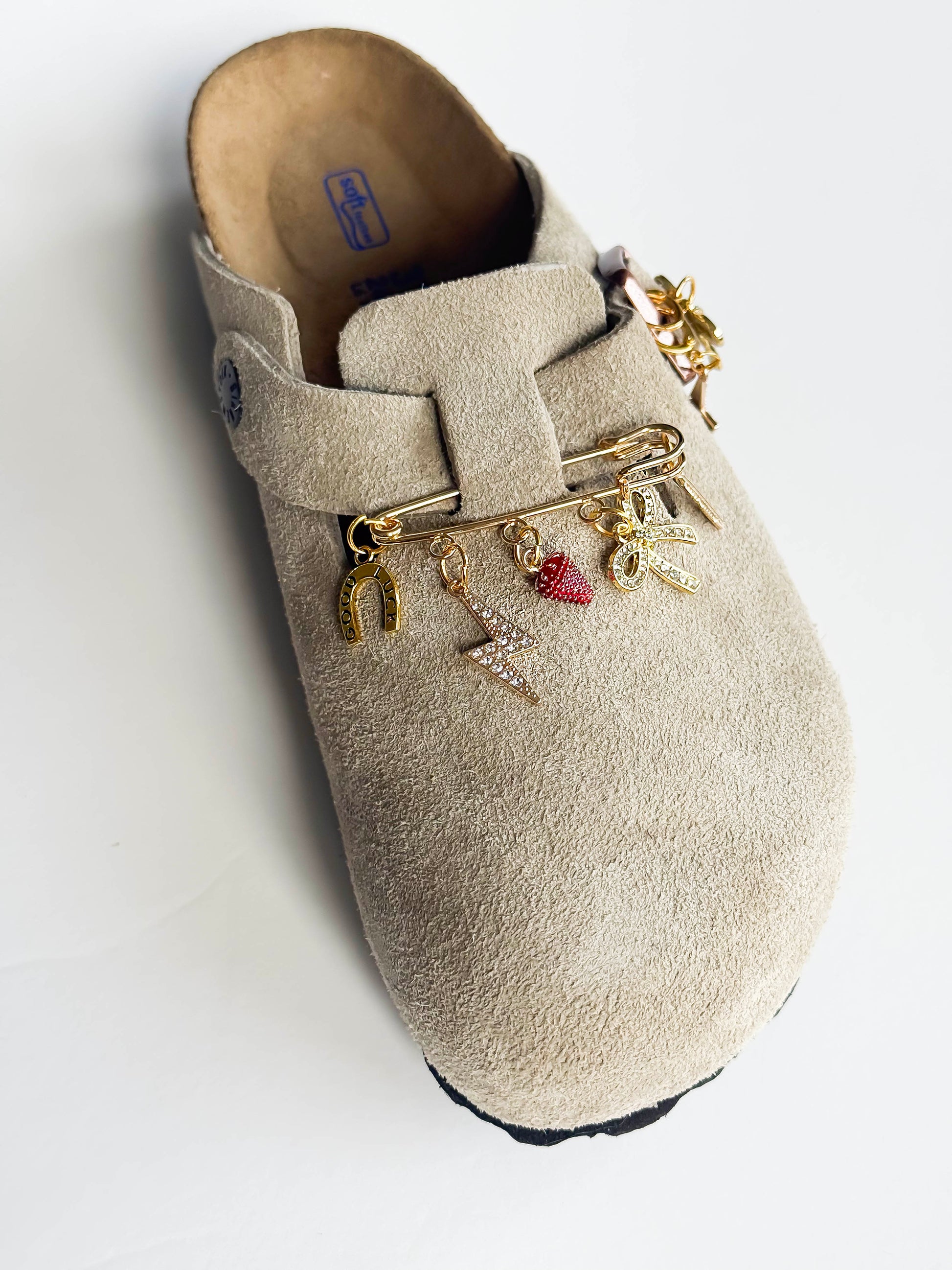 Meet the Boot to Birks Charm pin — the accessory that goes wherever your style takes you. Clip it on your boots, sneakers, or even your Birkenstocks for an instant pop of sparkle. With a mix of lucky and playful charms, this golden pin adds personality and shine to every step.